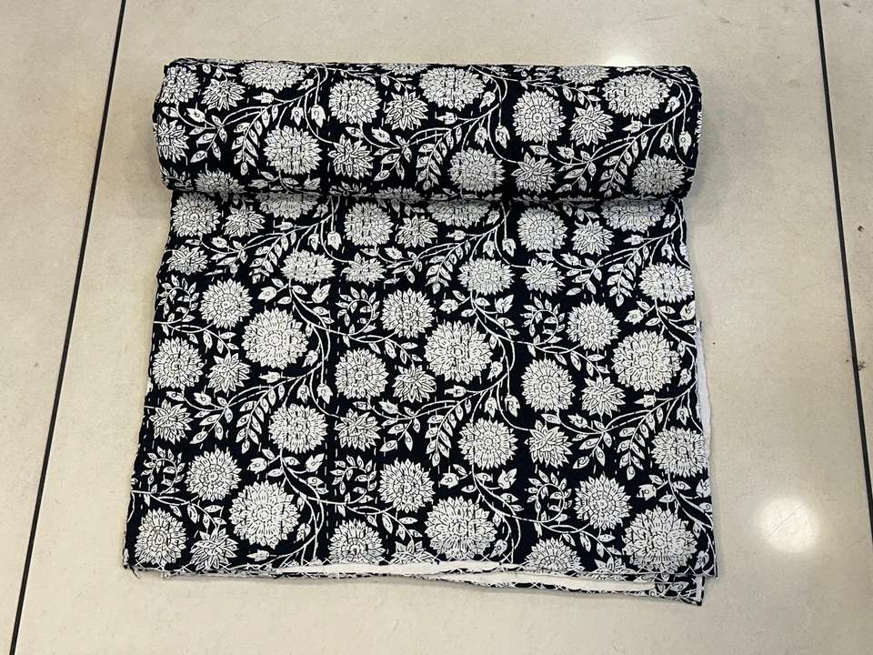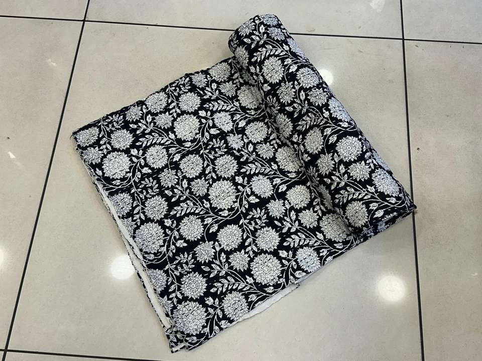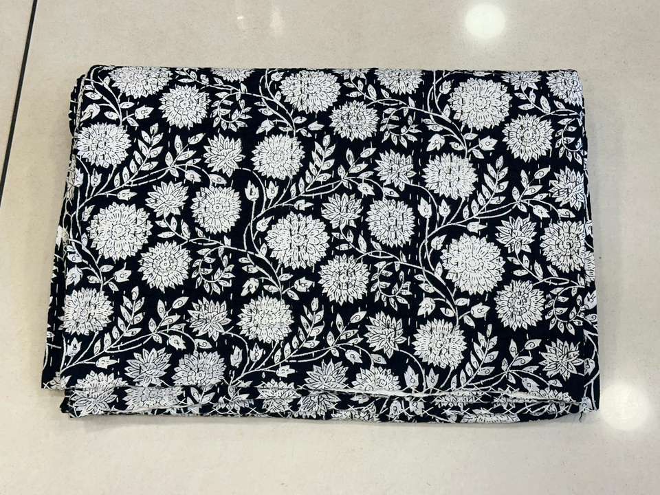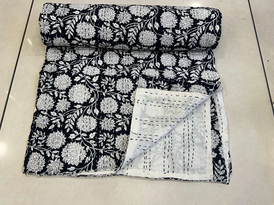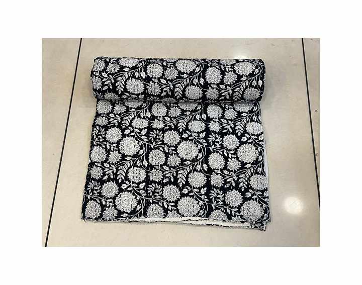 Bohemian Luxury Hand Block Print Kantha Quilt Black White Cotton Blanket Unique Design Gudari Kantha Bedspread Sizes King Queen