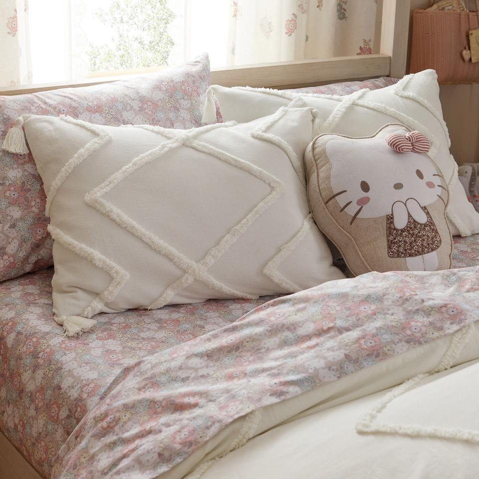 Bohemian Luxury Ivory Tufted 3-Piece Cotton Quilt Covers Handmade Bedding Set for King Queen Twin Sizes for Home Hotel Use