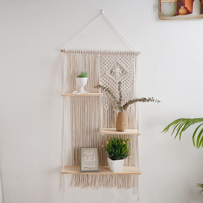 Bohemian Macrame Flower Wall Hanging Tapestry Macrame Plant Hanger with Tassel Tapestry Shelf Decor for Home or Office
