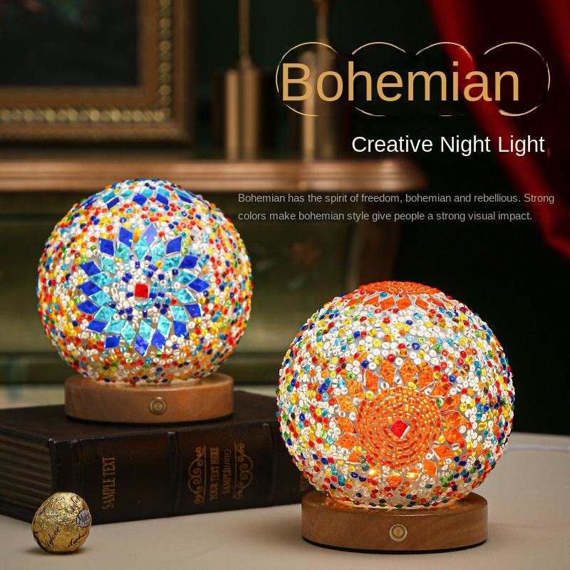 Bohemian Mosaic Ball Glass Light Turkish Style Glass Crystal Lamp Retro Art Decor Children Night Light Bedroom Bedside Lamp