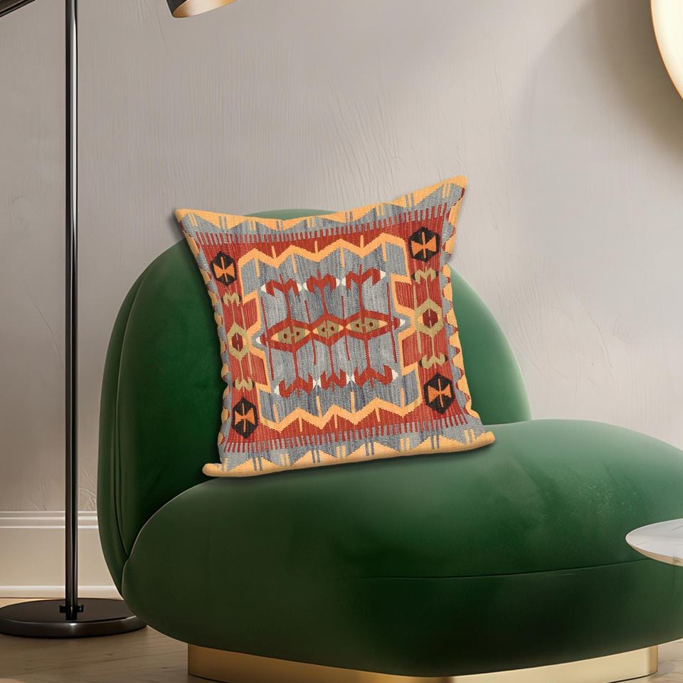 Bohemian Print Woven Pillow, Modern Kilim Design for Home Decor,18"x18" - 45x45 cm