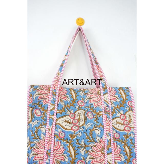 Handmade 100% Cotton Women's Vintage Tote Bag Floral Printed Trendy Fashionable Shoulder Bag open Closure for beach parties