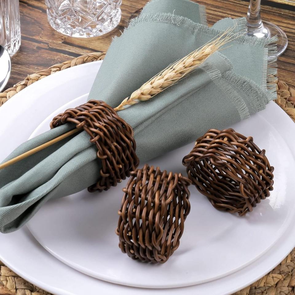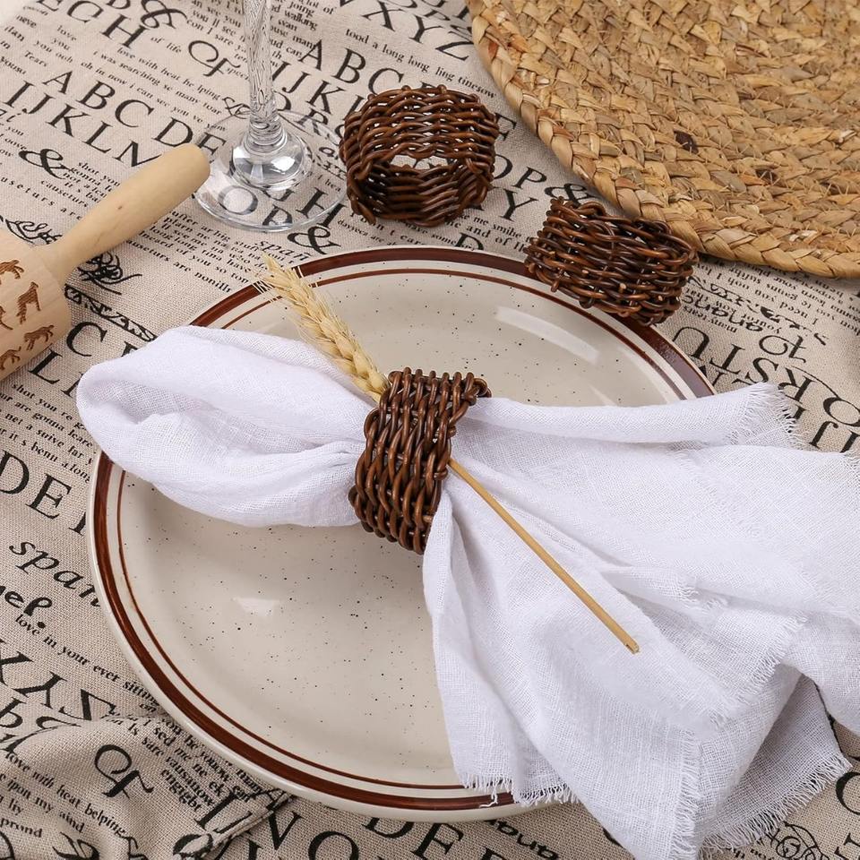 Bohemian Rattan Napkin Rings Handwoven Natural Table Decor Set of 6 Eco Friendly Wedding and Dinner Party Essentials