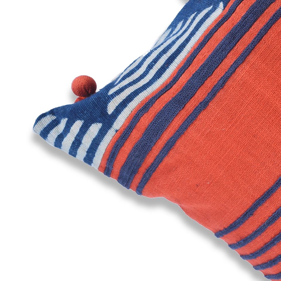 Bohemian Striped Pattern Mud Cloth Embroidered Pompom Cushion Covers For House Warming Gifts And Living Room Decoration