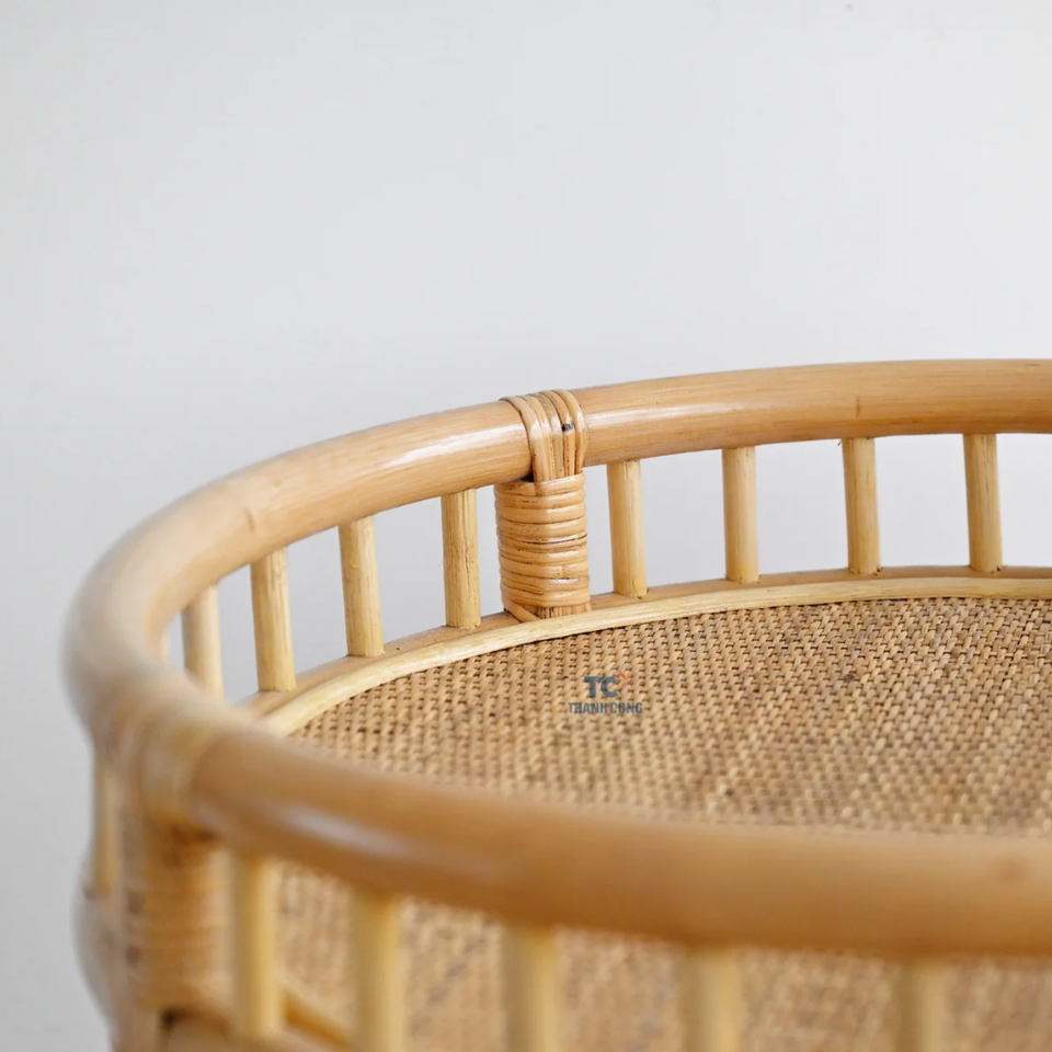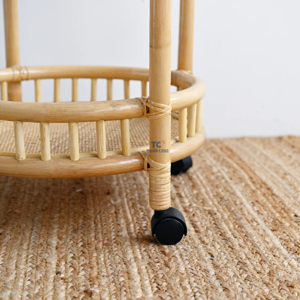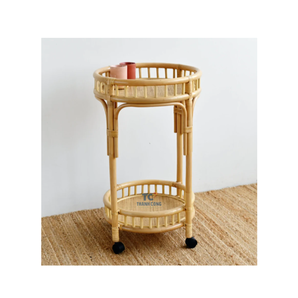 Bohemian Style Durable Rattan bar Cart Natural Rattan Drinks Trolley Rattan Rolling Serving Cart with Wheels From Vietnam