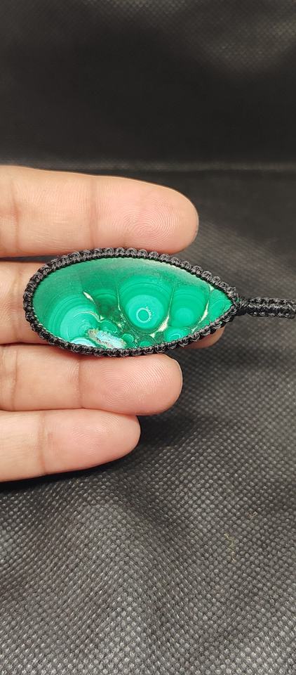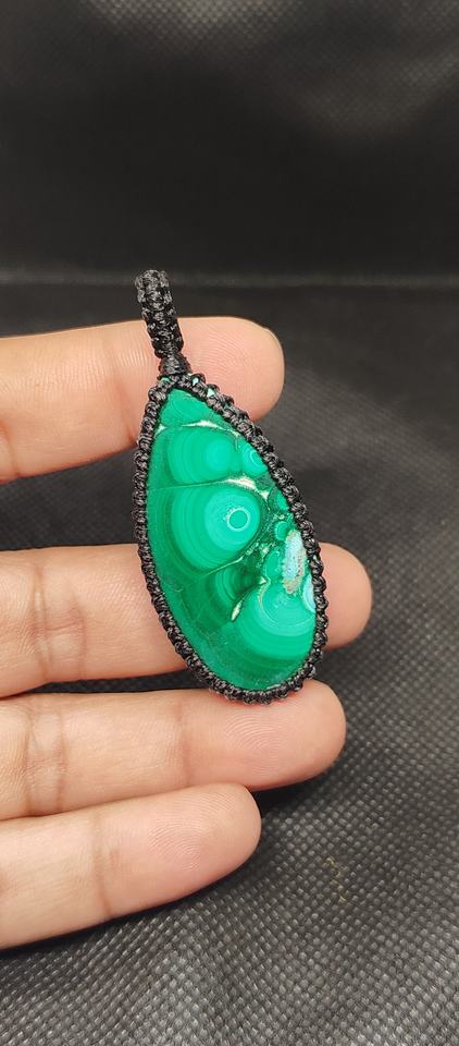 Bohemian Style Malachite Pear Cabochon Macrame Wrap Pendant Natural Healing Crystal Stones