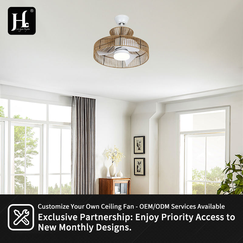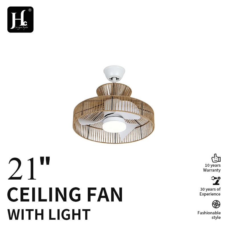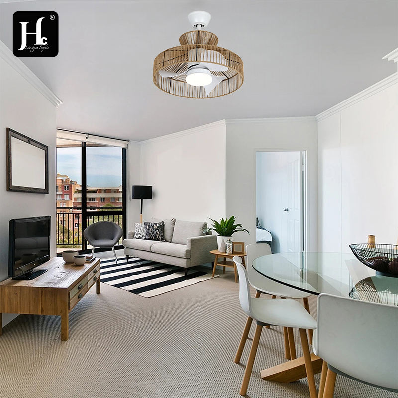 Bohemian-Style Rattan Recessed Dimmable 21-Inch LED Ceiling Fan with Lantern-Style Lighting