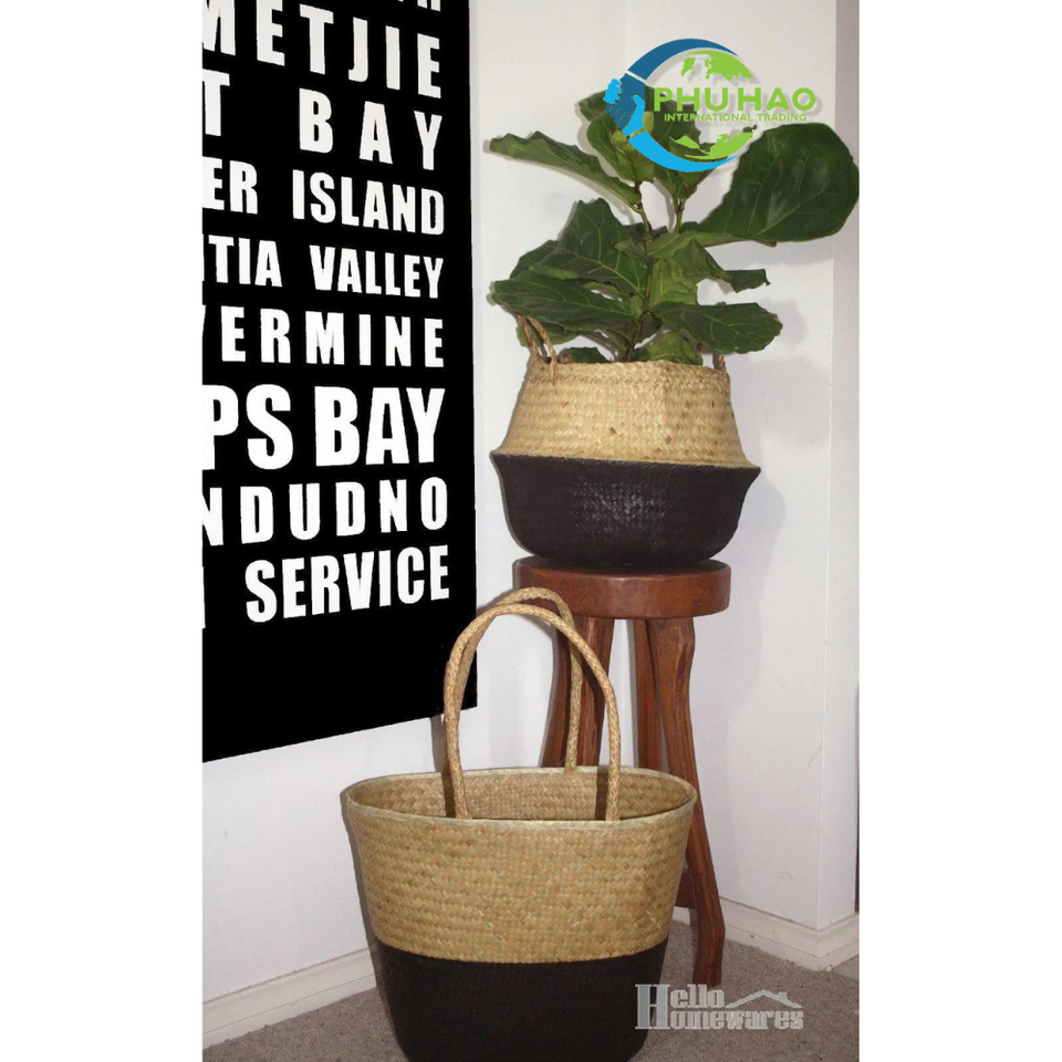 Bohemian Style SEAGRASS BELLY BASKETS Natural Handwoven Straw Basket for Indoor Plants, Toys, and Household Storage