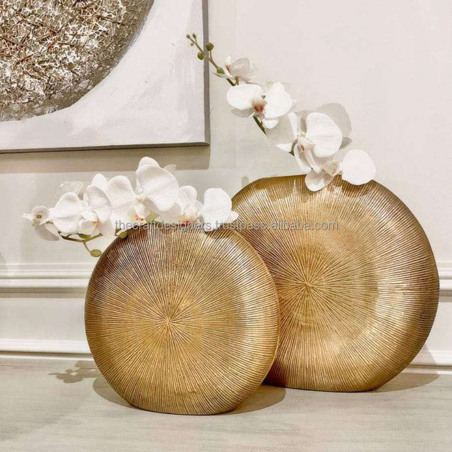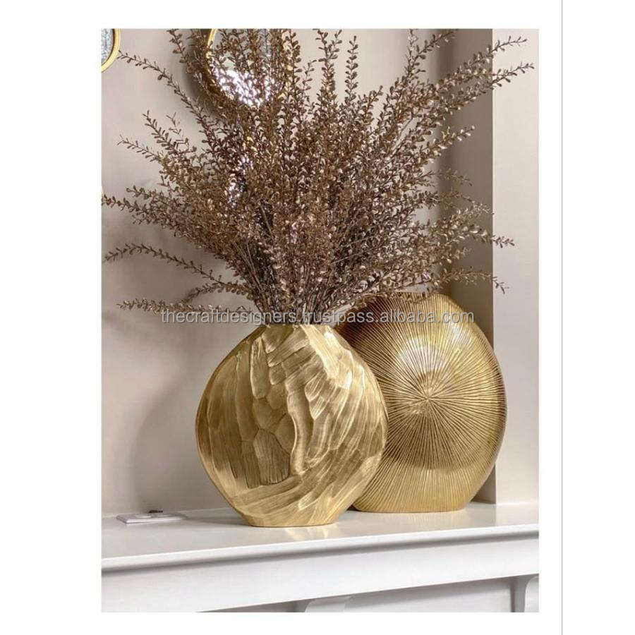 Bohemian Style Table Vases Round Shape Sheet Iron Planters Set and Flower Pots Gold Finishing Metal Vase for Interior Decoration