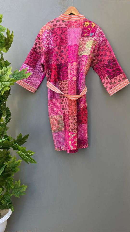 Bohemian Style Vintage Kimono Silk Sari Robe Handcrafted Patchwork Kantha Jacket Quilted Perfect Winter Gift for Her Letter