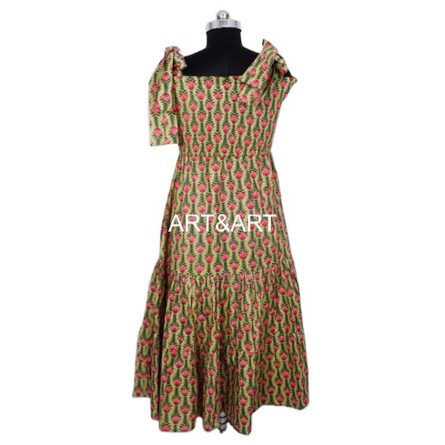Bohemian Sweet Natural Tiny Floral Printed Cotton Midi Dress Customized Square Neck Sleeveless Handmade Wedding Casual Wear