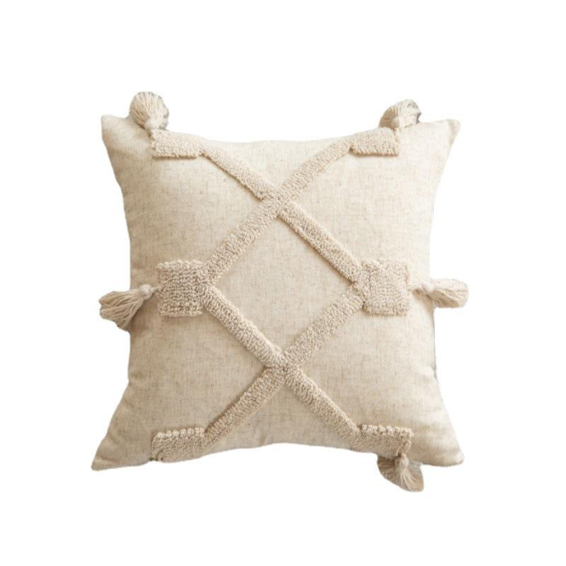 Bohemian Throw Pillow Cover Rectangle Geometric Pattern Plush Cotton Polyester Tassel Decorative Cushion Living Room Home
