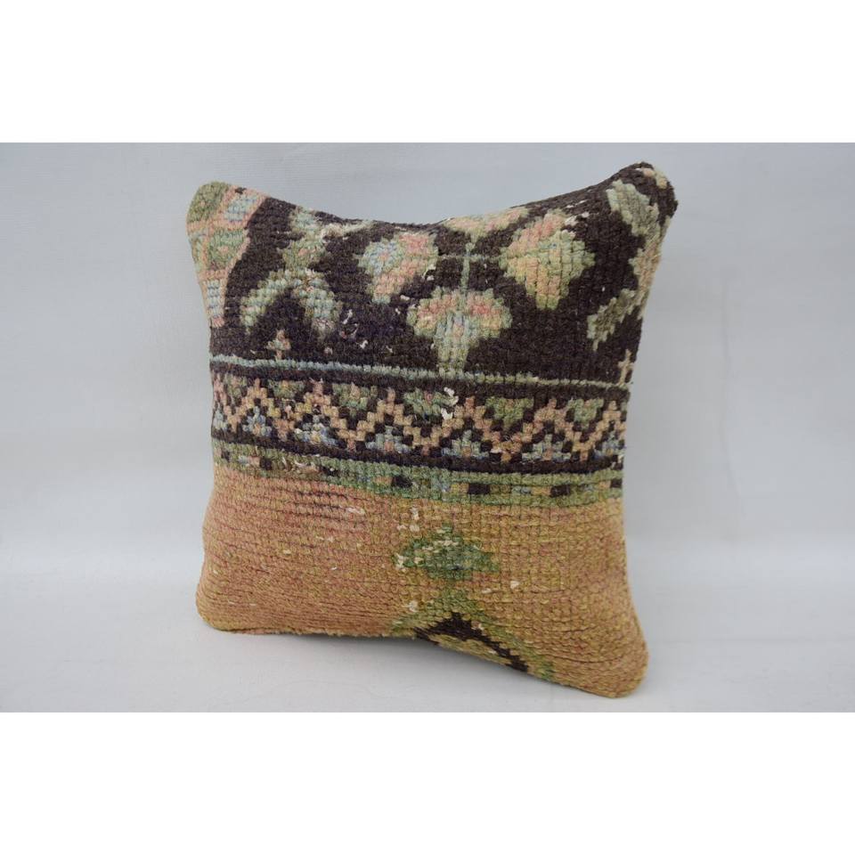 Bohemian Vintage 12x12 Inch Beige Wool Pillow Woven Kantha Patchwork Embroidered Cushion Non-Slip Eco-Friendly Decorative