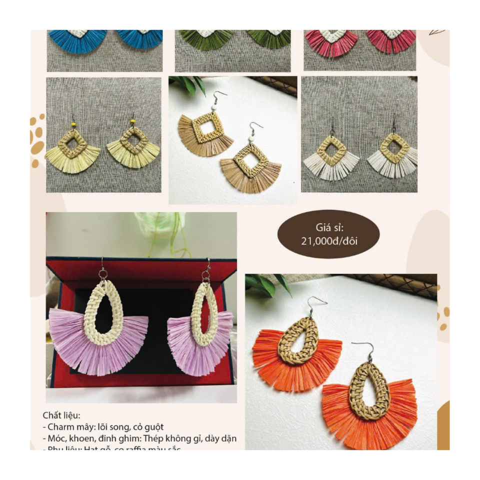 Bohemian Vintage Clip-On Rattan Earrings Colorful Teardrop Design with Eco-Friendly Raffia Drop Handmade Vacation Vibes Jewelry