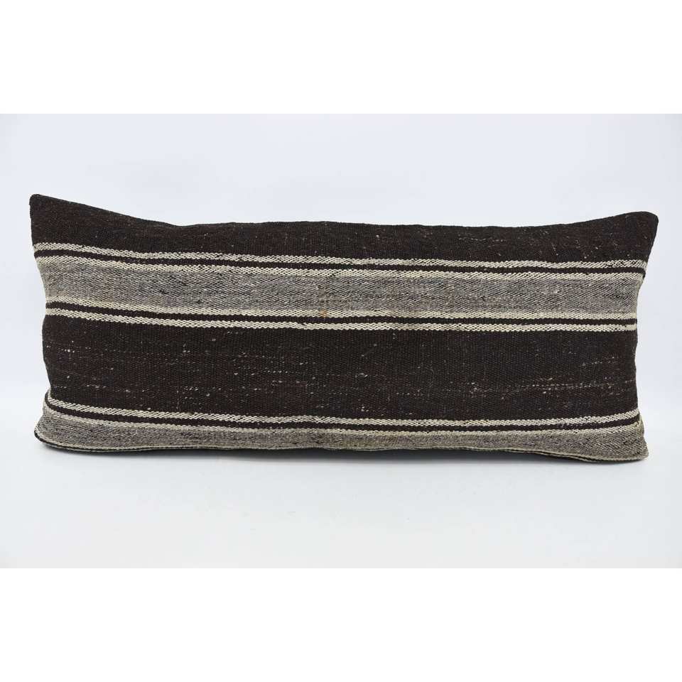 Bohemian Vintage Patterned Wool Pillow 16x36 Inch Brown Cushion Luxury Woven Decorative Cushion for Living Room Floor