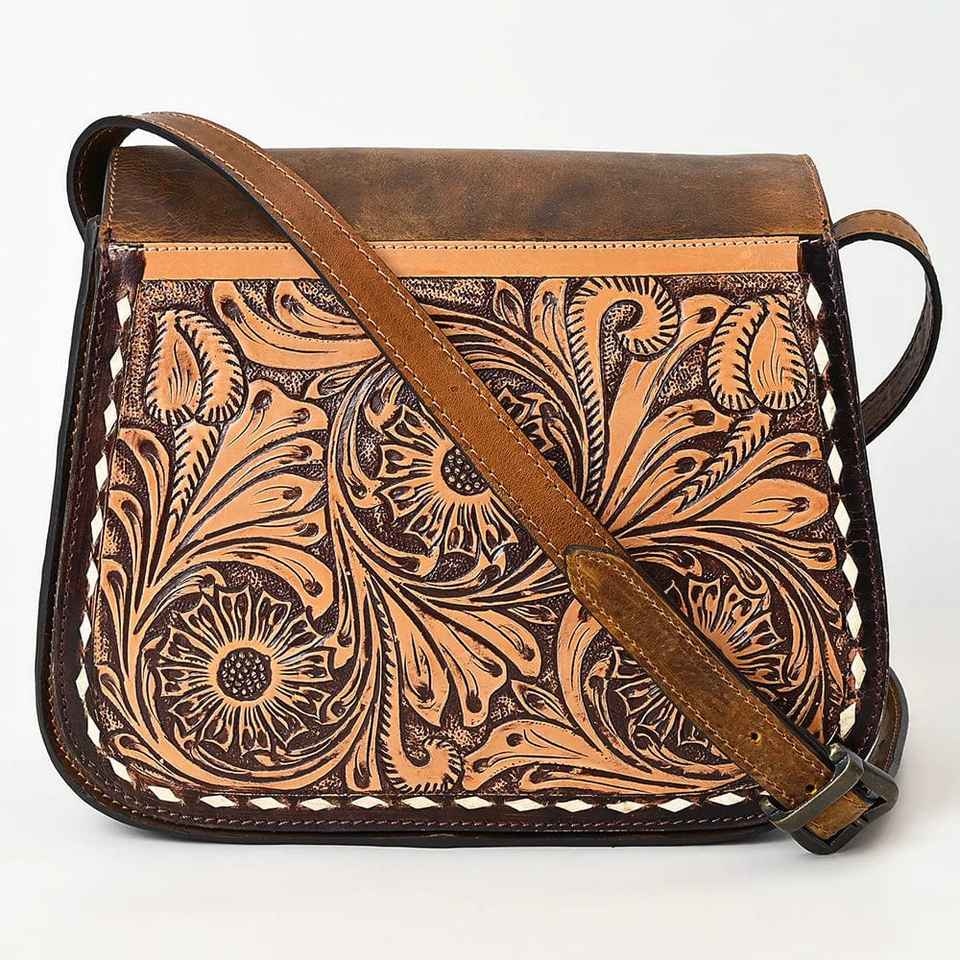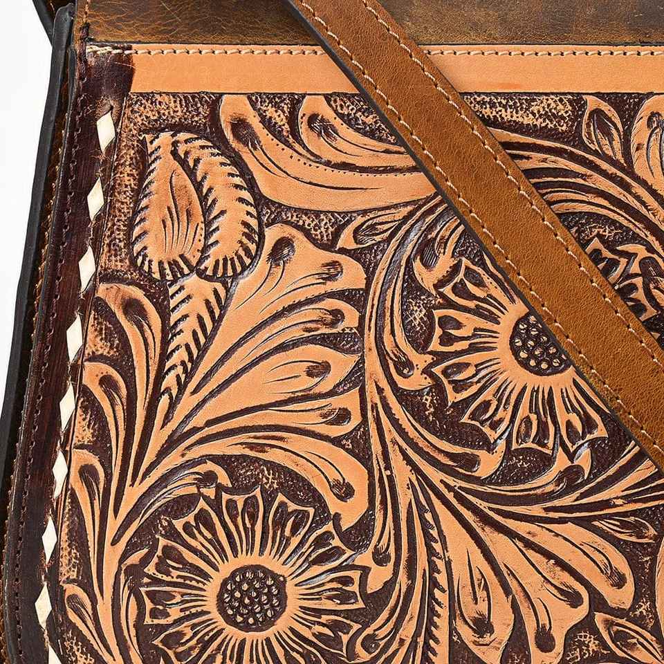 Bohemian Western Eco-Friendly Durable Genuine Leather Crossbody Sling Bag Zipper Floral Handtooled Design Large Capacity Custom