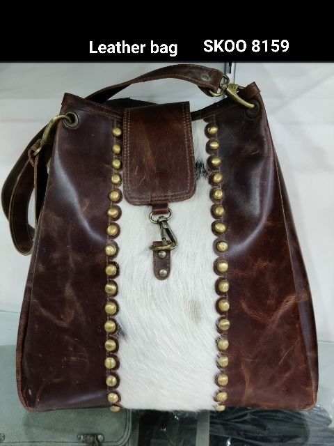 Bohemian Western Style Boho Tote Bag Handwoven Brown Soft Leather with Tassels and Fringe Pearl Decoration
