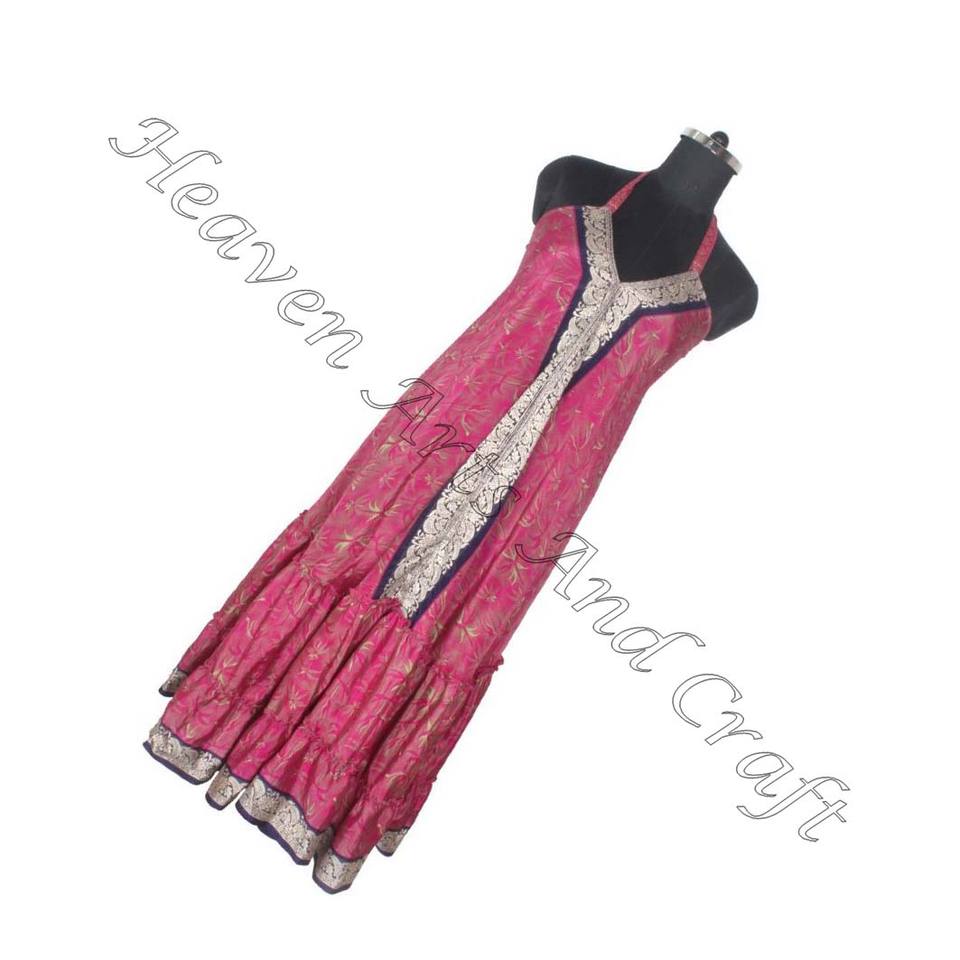 Bohemian Women's Boho Vintage Silk Saree Dress Bohemian Style Sleeveless Long Traditional Dress Simple Dress Ladies Elegant