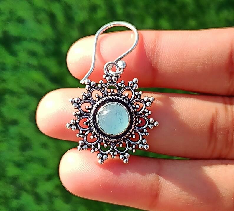 Keyword:Blue Chalcedony Stud Earrings With Sparkling Dangle Gemstone Jewelry