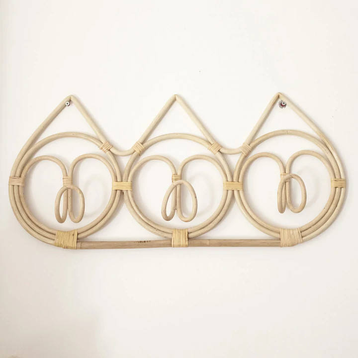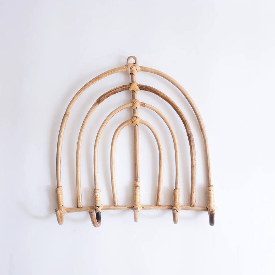Boho Bamboo Rattan Wood Coat Rack Wall Mount Hanging Natural Clothes Racks and Hooks for Clothes