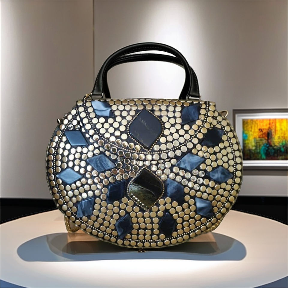 Boho Chic Classic Indian Waterproof Crossbody Purse with Candy Pattern and Metallic Elegance