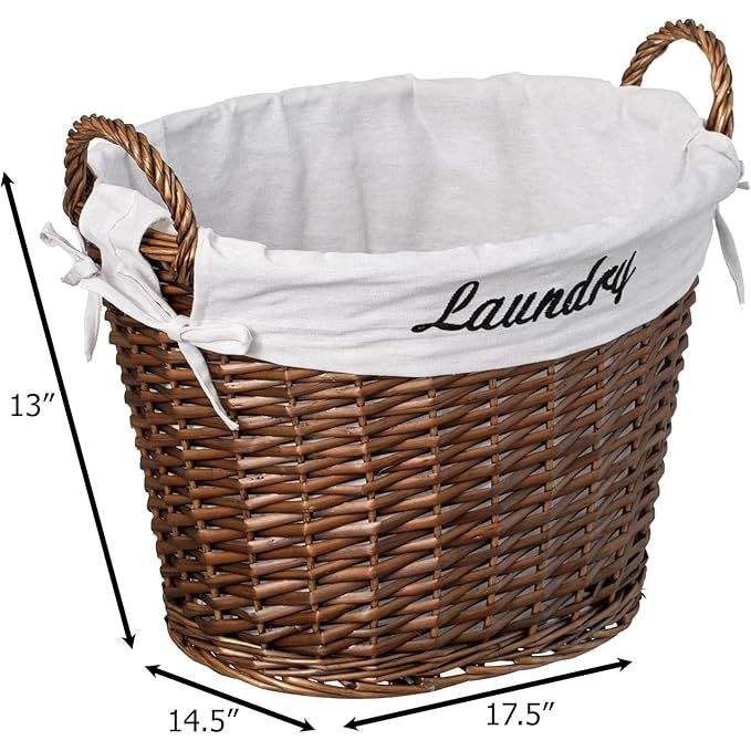 Boho Chic Handwoven Wicker Laundry Basket Kitchen Storage Hamper with Liner and Plastic Handles for Clothes Storage