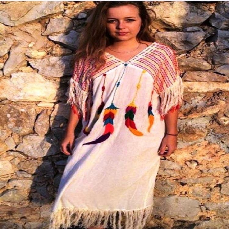 Boho Chic Maxi Dress for Women Luxury Placement Embroidery Sleeved Loose Cotton Modern XL Size Casual Style Summer dress women