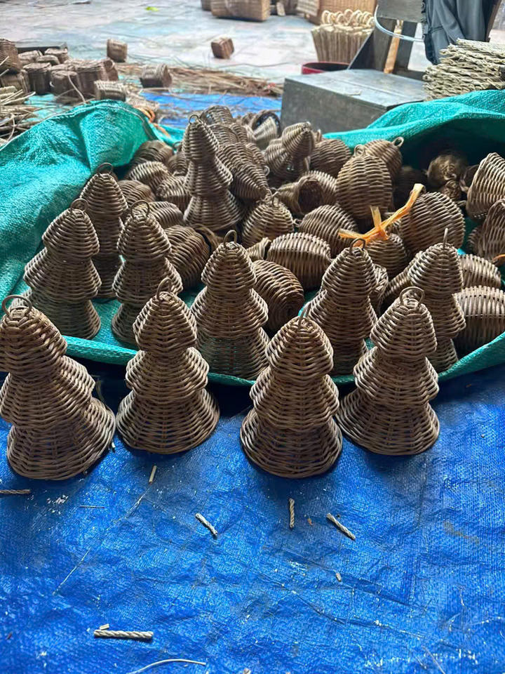 Boho Christmas Ornaments Customize in 99 Gold Craft Factory: Natural Rattan Christmas Bell Decor Natural Wicker Ornaments.