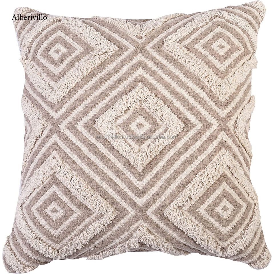 Boho Cotton Cushion Cover 20X20 Inch Throw Pillow Cover for Sofa Couch Handwoven Bohemian Pillow Throw Case
