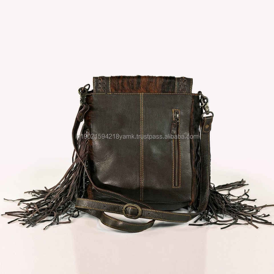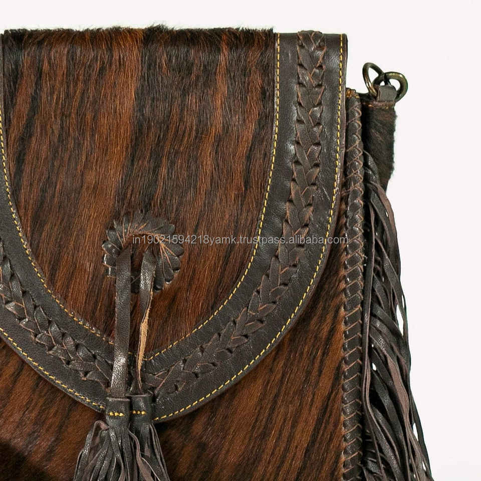 Boho Cowhide Leather Fringe Crossbody Bag Western Style Shoulder Bag for Women