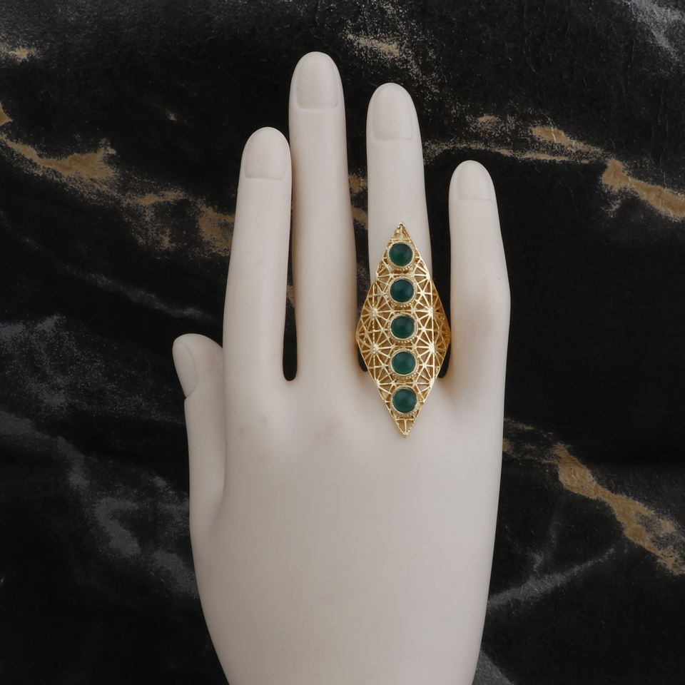 Boho Dainty Adjustable Design Ring Natural Green Onyx Round Cabochon Gemstone Gold Plated Fancy Designer Jewelry Rings