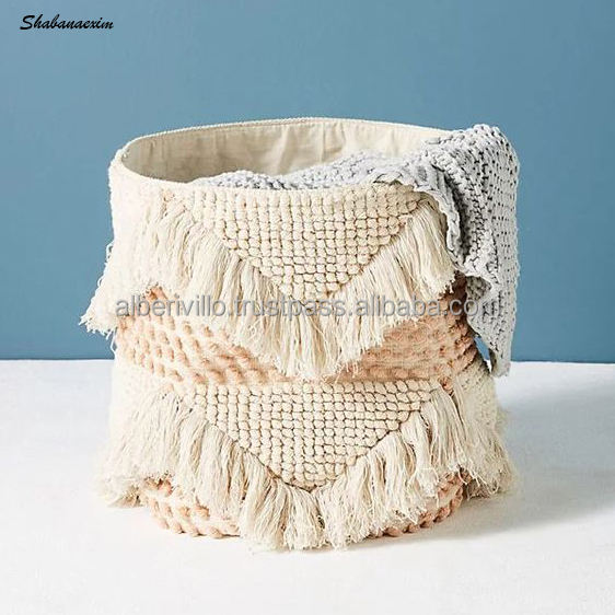 Boho Different Designs Collapsible Cotton & Rope Laundry Basket Home Organizer Storage Bin with Decorative Basket Design