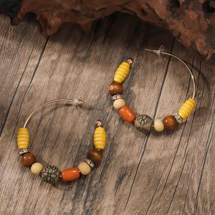 Boho Stud Earrings Wood Simple Geometric Wooden Beads Unisex Vintage Splicing Party Heart Shape Wholesale Blank Wood Jewelry