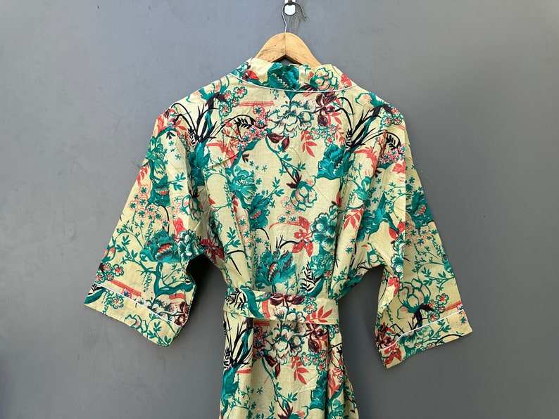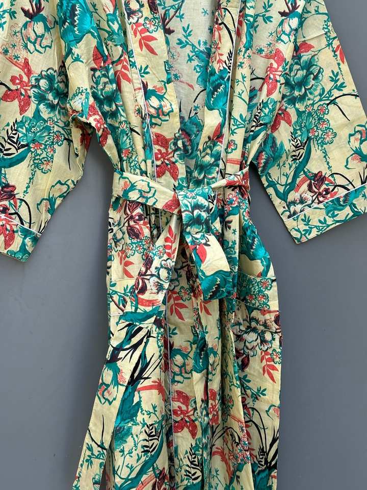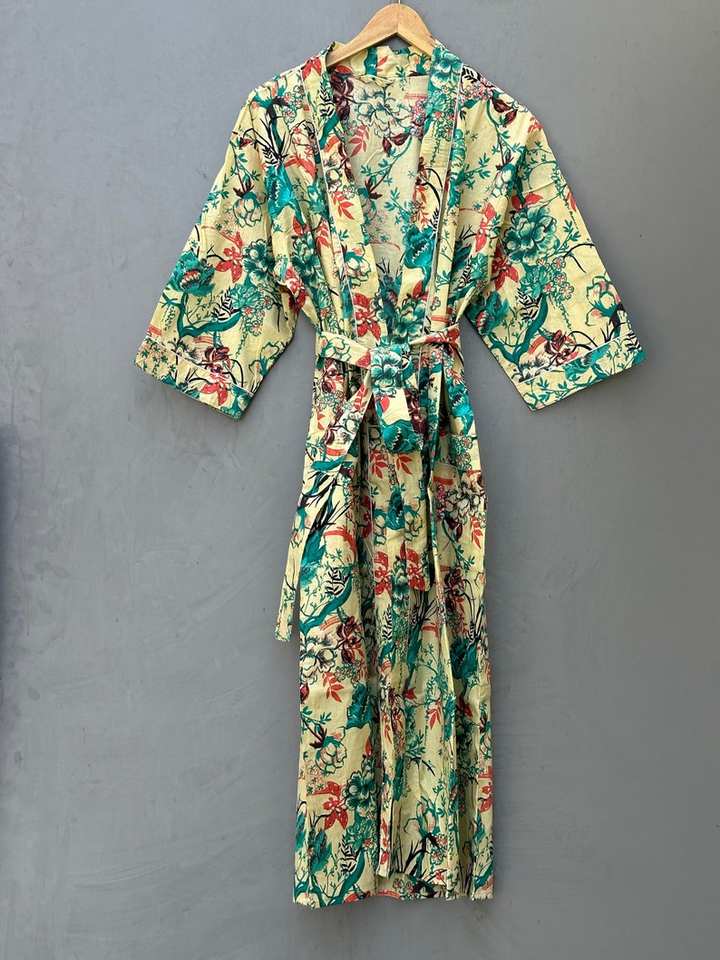 Boho Floral Cotton Kimono Robe Festival Kaftan Lightweight Dressing Gown