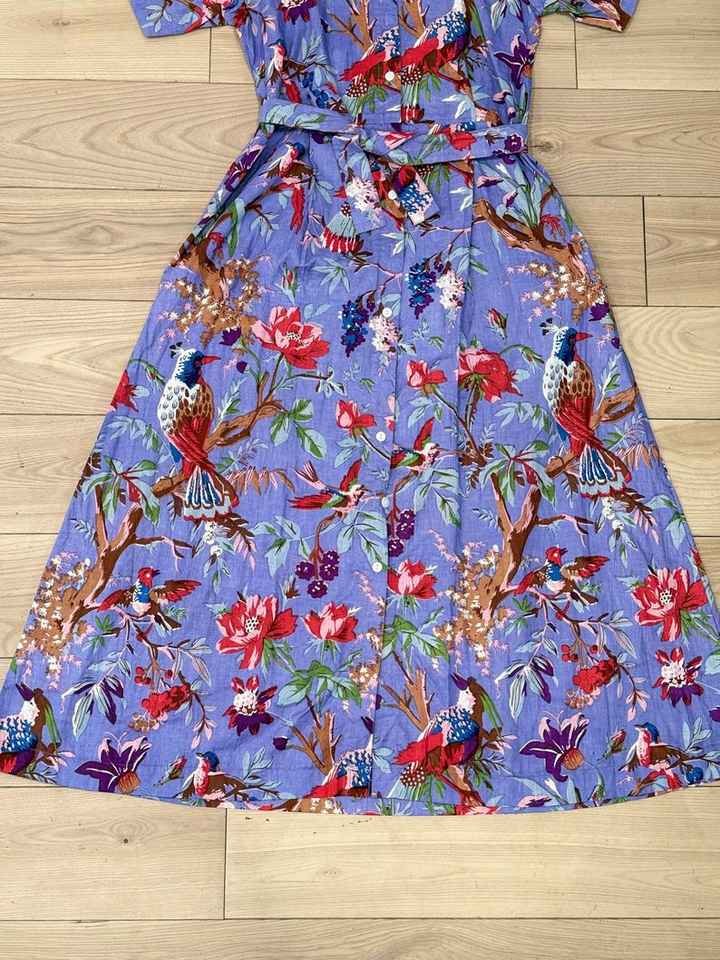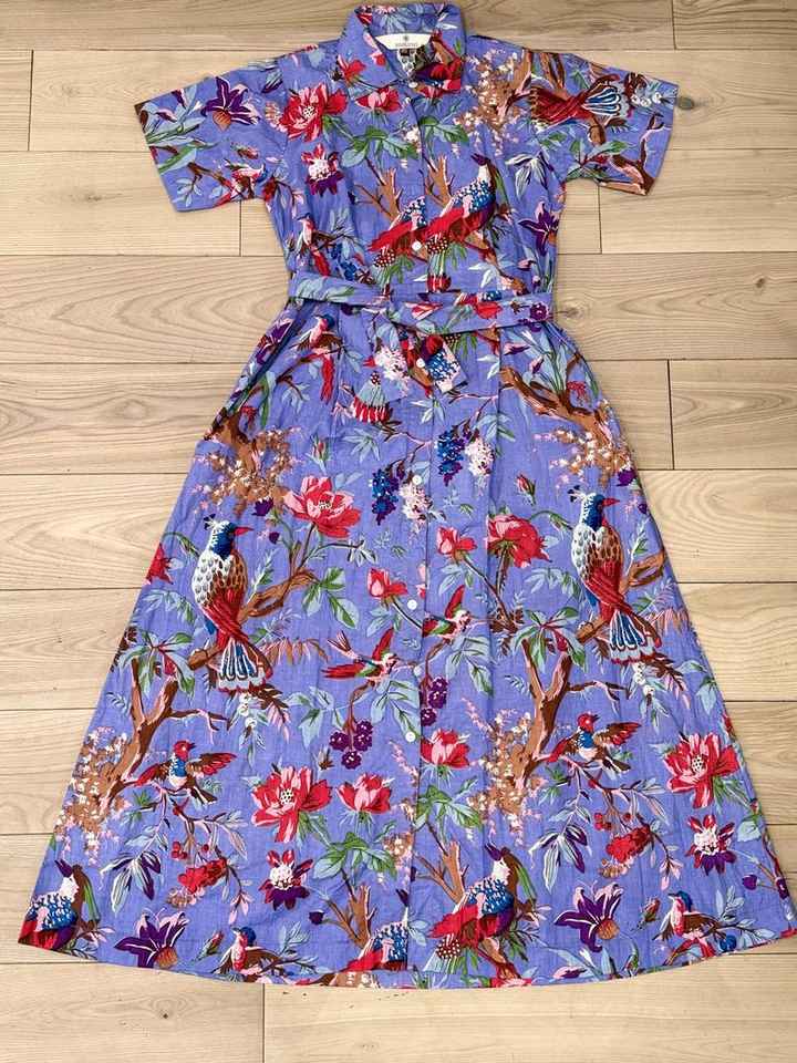 Boho Floral Organic Cotton Maxi Kaftan Hand Block Printed Summer Dress XS For Women