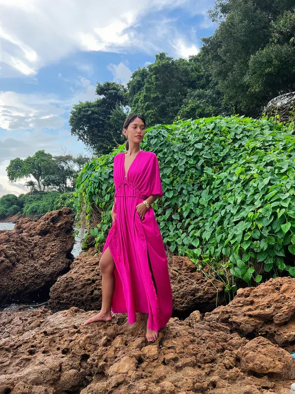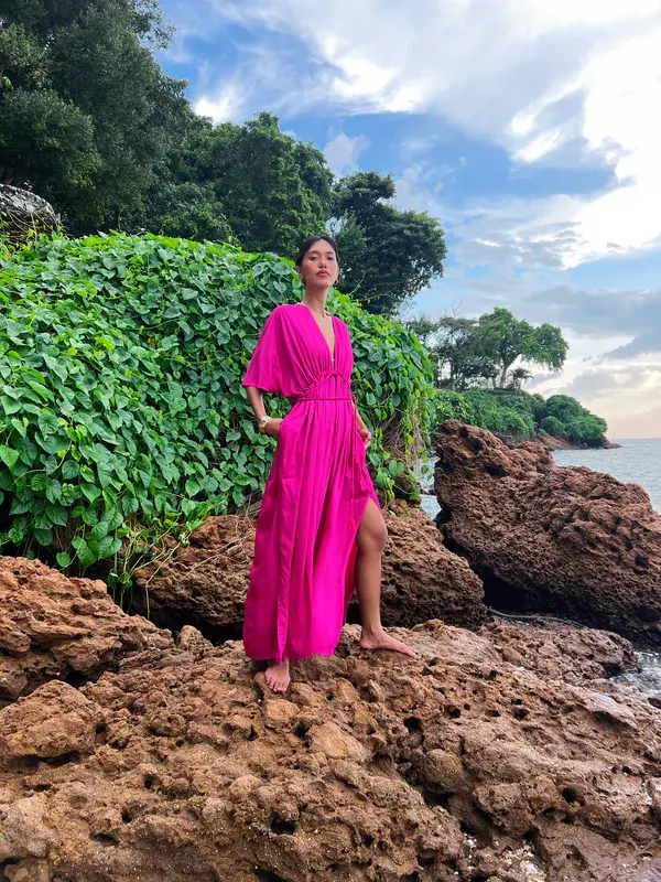 Boho Half Sleeve Pink Maxi Dress for Women Holiday Casual Full Length Summer Loose Outfits Loose Plus Size Ladies Dress