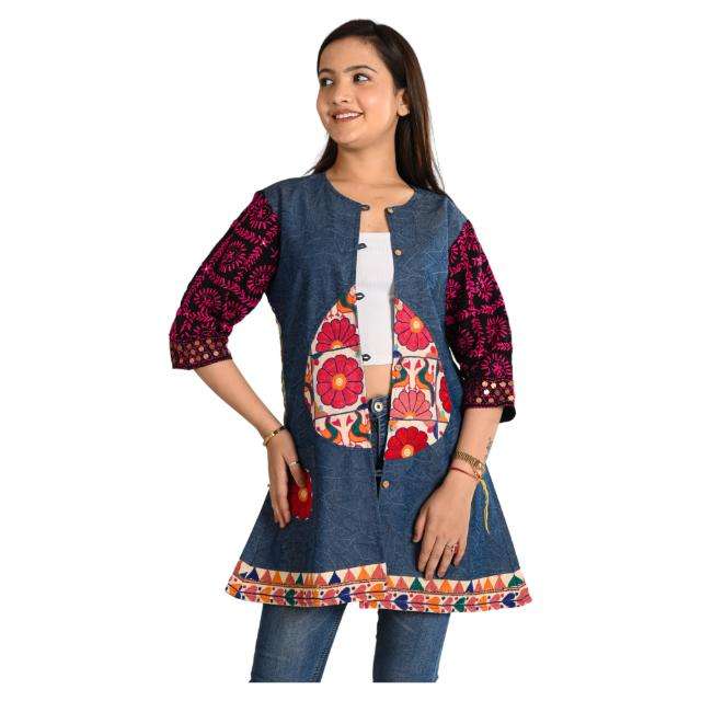 Boho Hippie Denim Embroidery Jacket for Women Handmade Designer Bohemian Denim Jacket, Party Wear Outfit