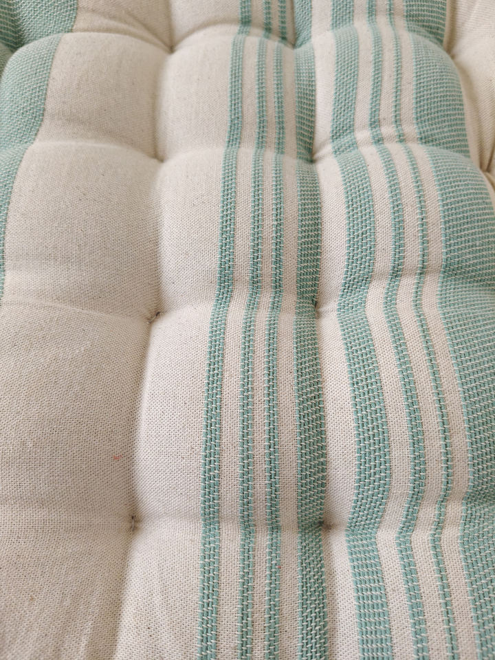 Boho Home Decor Quilted Chair Pad Hand Block Printed Blue Floral Cotton Seat Cushion for Indoor & Outdoor for Reading & Bed Rest