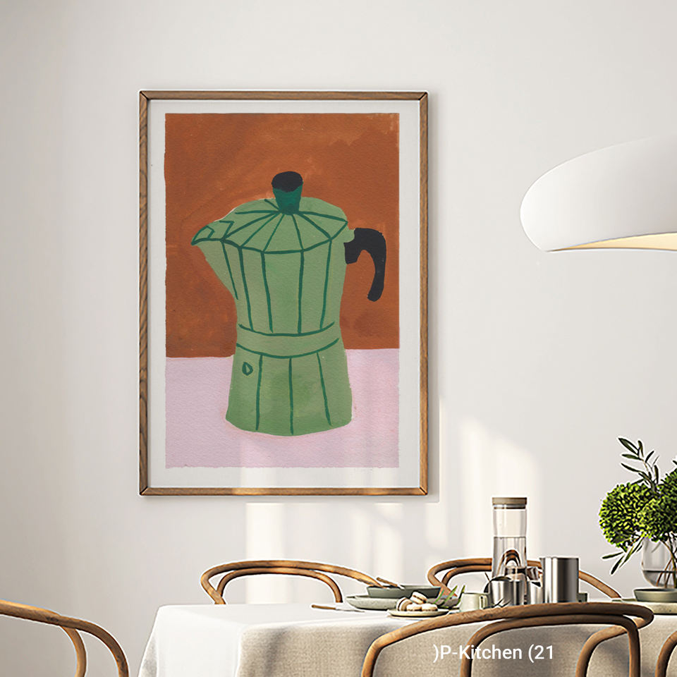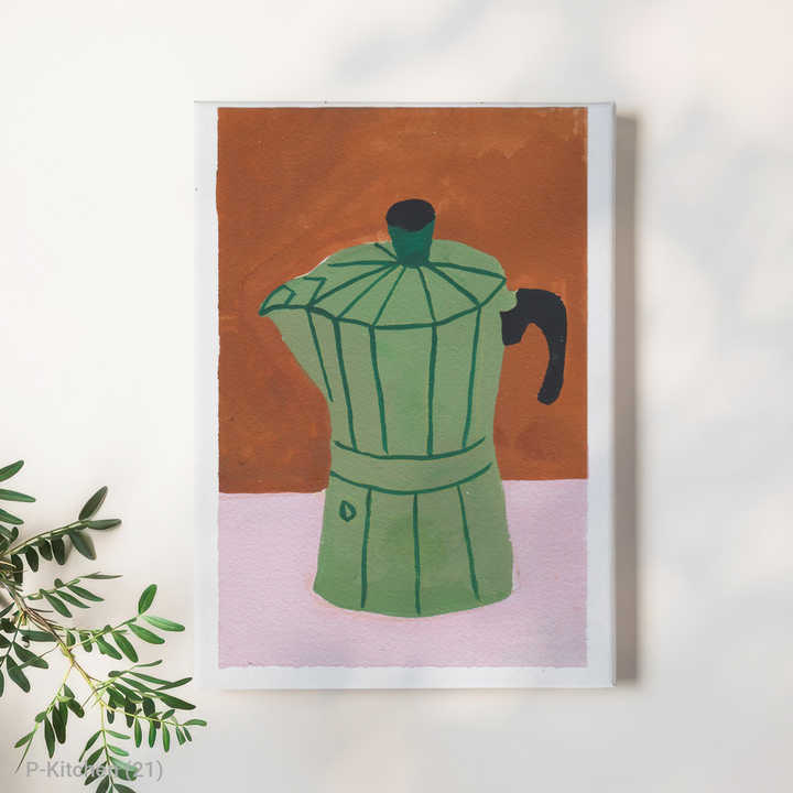 Boho Kitchen, Coffee Bar Decor Moka Pot Illustration Minimalist Coffee Lover, Italian Coffee Culture Wall Art Canvas