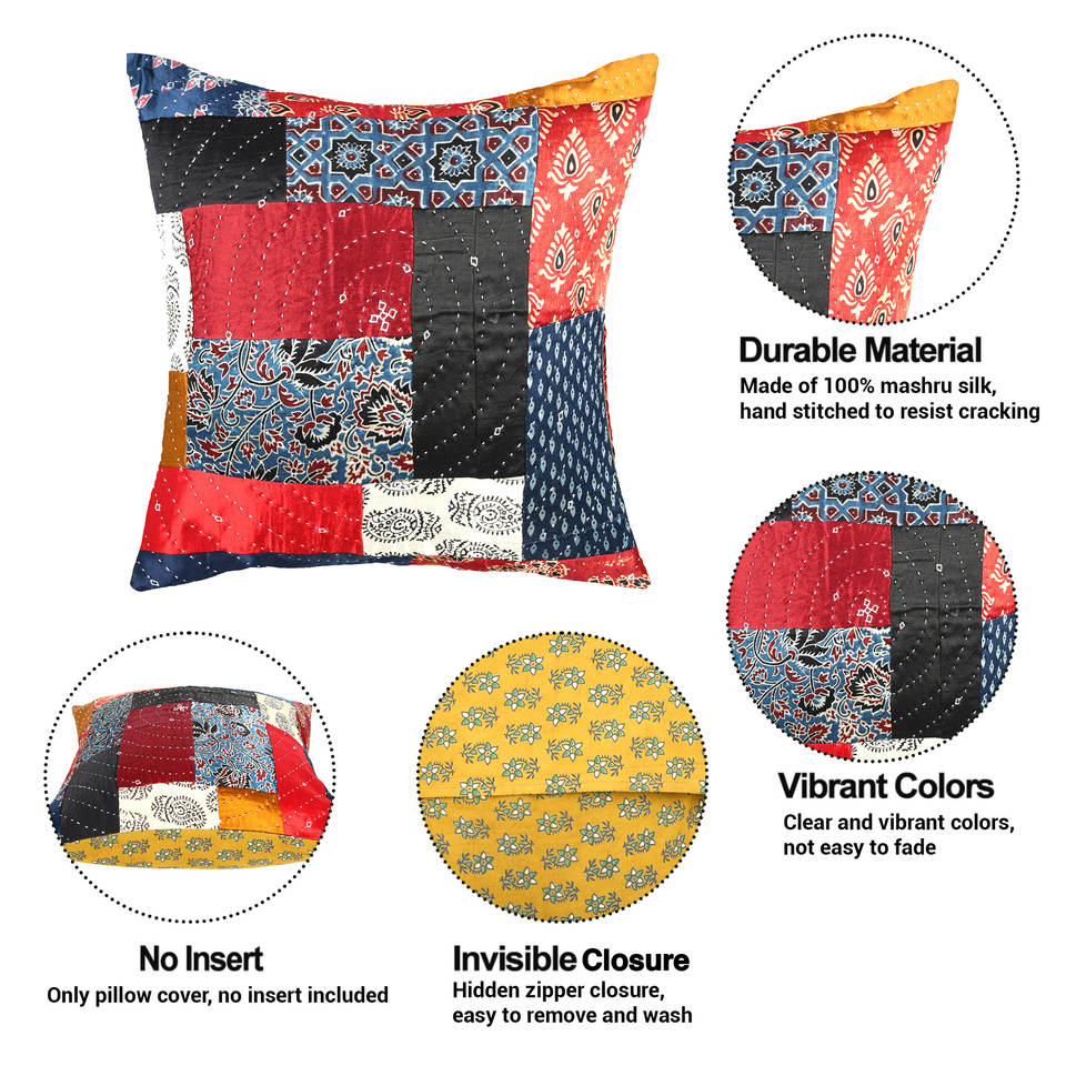 Boho Luxury Mashru Silk Multi Block Cushion Covers, High Quality Throw Pillows, Custom Embroidered Living Room Home Decor Case