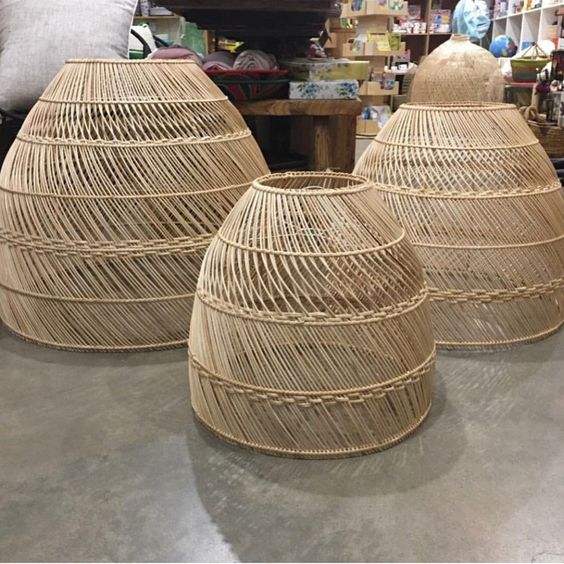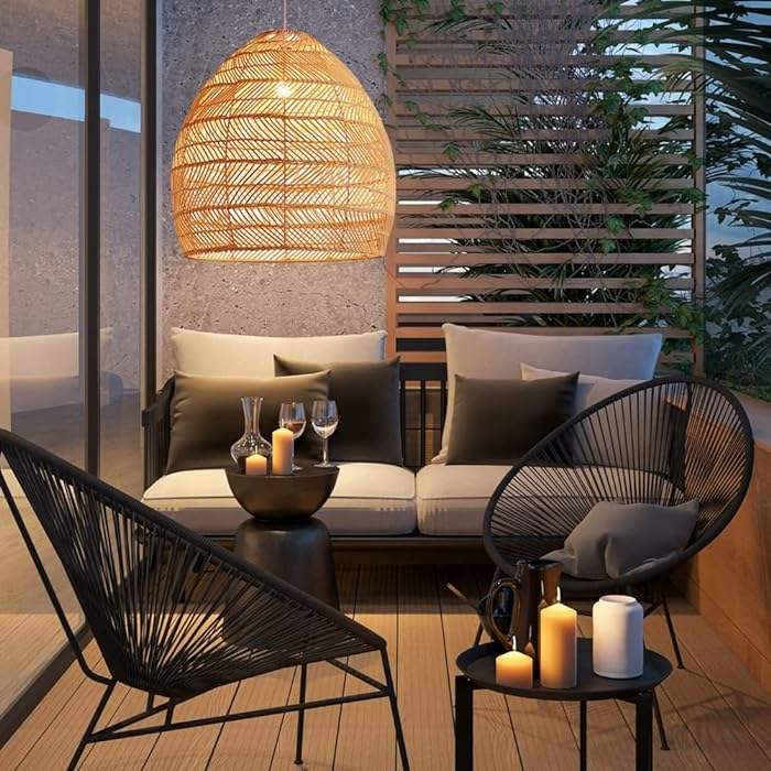Boho Natural Wicker Rattan Lamp Shade Cover Farmhouse Bamboo Pendant Light Handwoven Coastal Minimalist Ceiling Lamp Home Decor