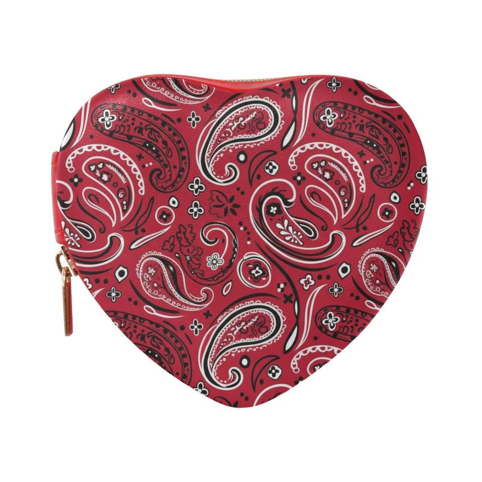 Boho Paisley Design Heart Shape Mini Travel Ring Jewelry Box Portable Pu Leather Custom Travel Packing Jewelry Storage Cases