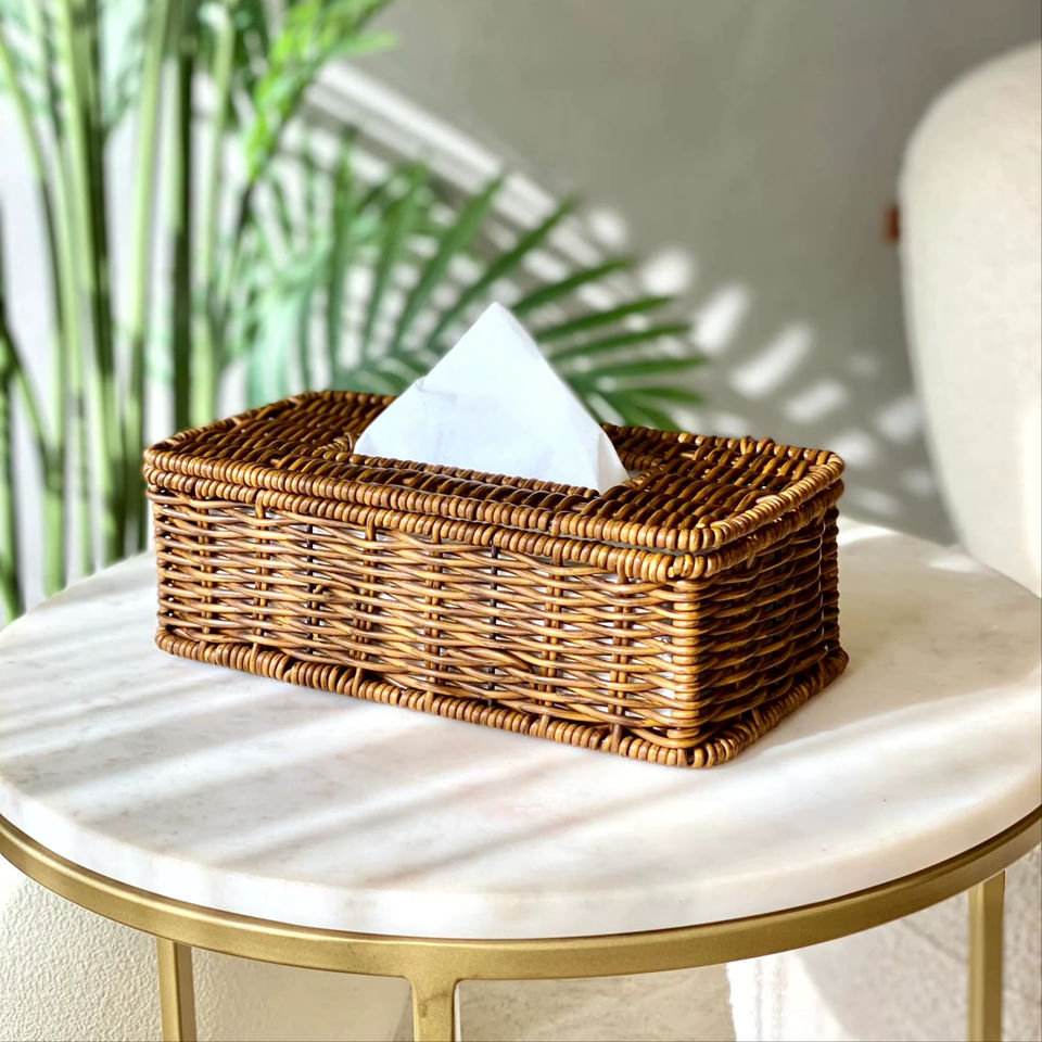 Name:Boho Rattan Tissue Box Size: L10 x W5 x H3 inch
