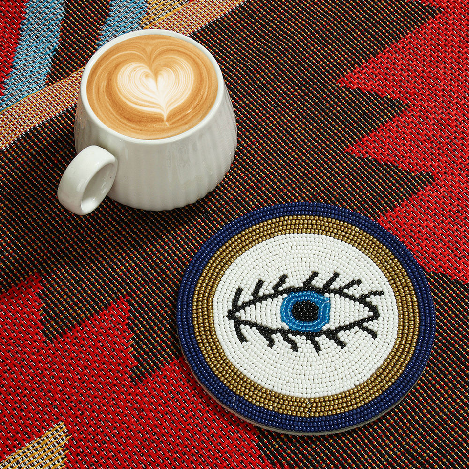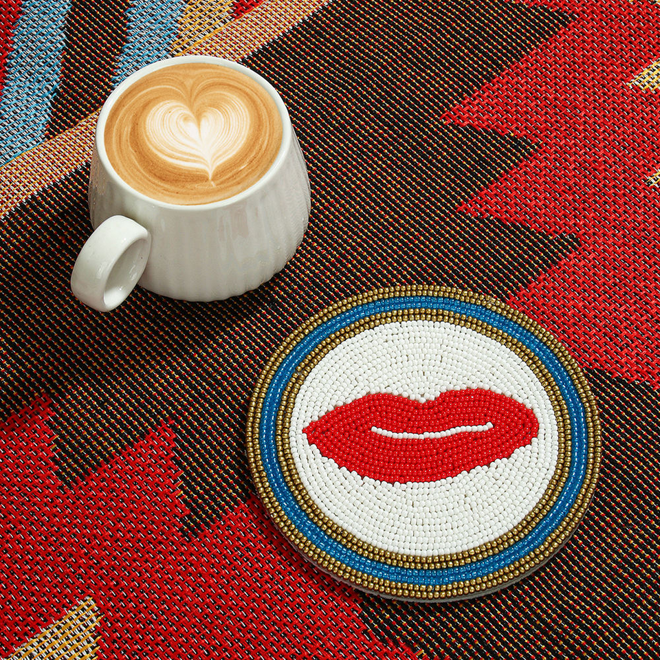 Boho Rice Bead Coasters Engrave Handmade Eco-Friendly Tabletop Decor with Eye-Lips-Cactus Pattern for Mats & Pads