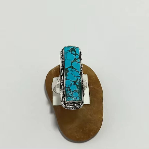 Boho Sterling 925 Silver Plated Turquoise Ring Women Statement Ring Handmade Unique Fashion Jewelry Gift For Her