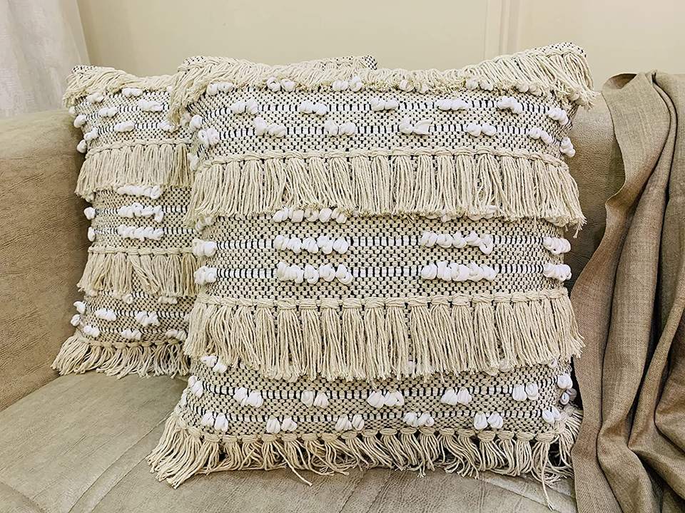 Boho Style 18 x 18 Inch Cotton Tufted Geometric Decorative Throw Pillow Covers Hand Woven Seat Cushions for Couch & Sofa Use