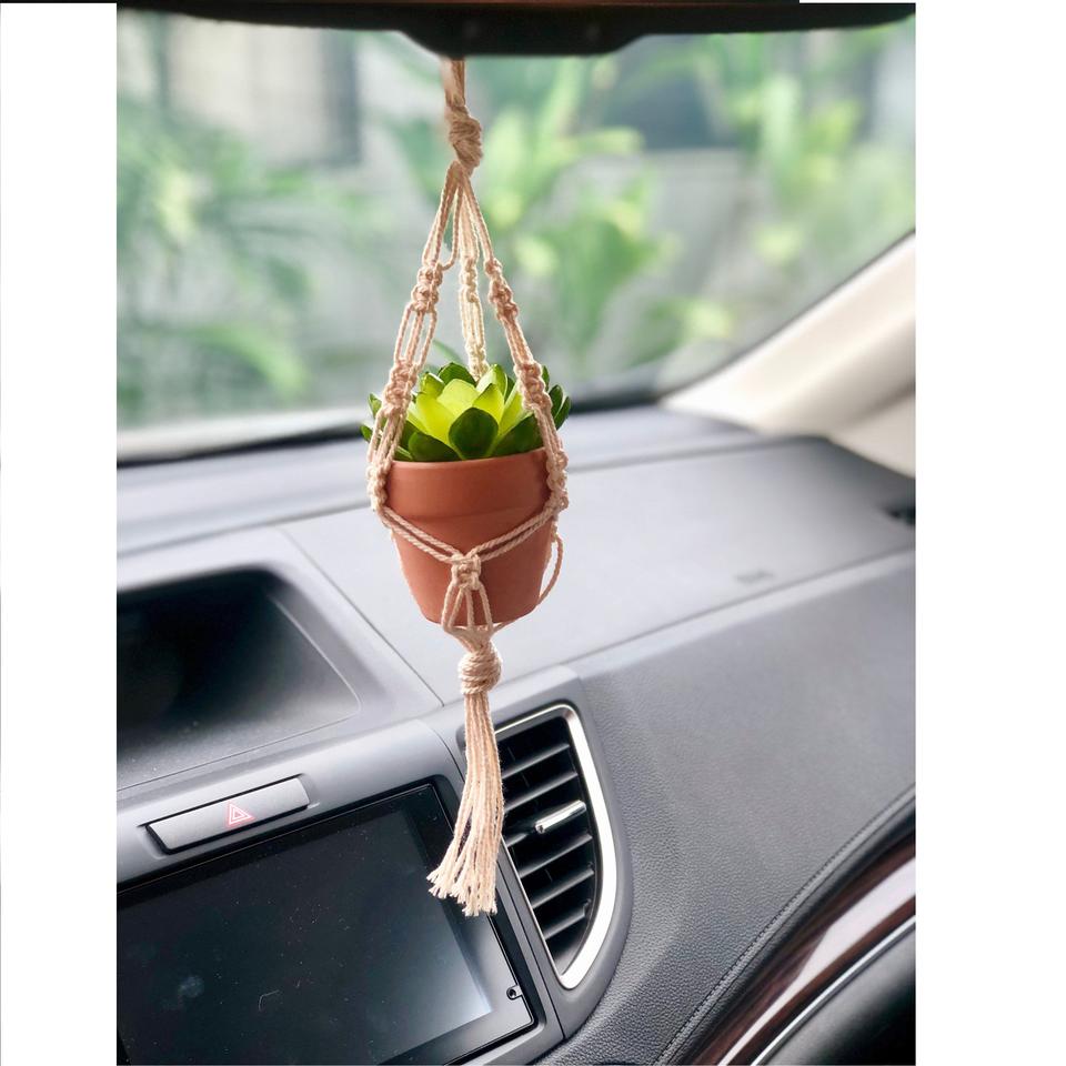 Boho Style Car Plant Hanger Mini Macrame Plant Hanger Boho Pot Gift Car Accessory With Artificial Flower Pot