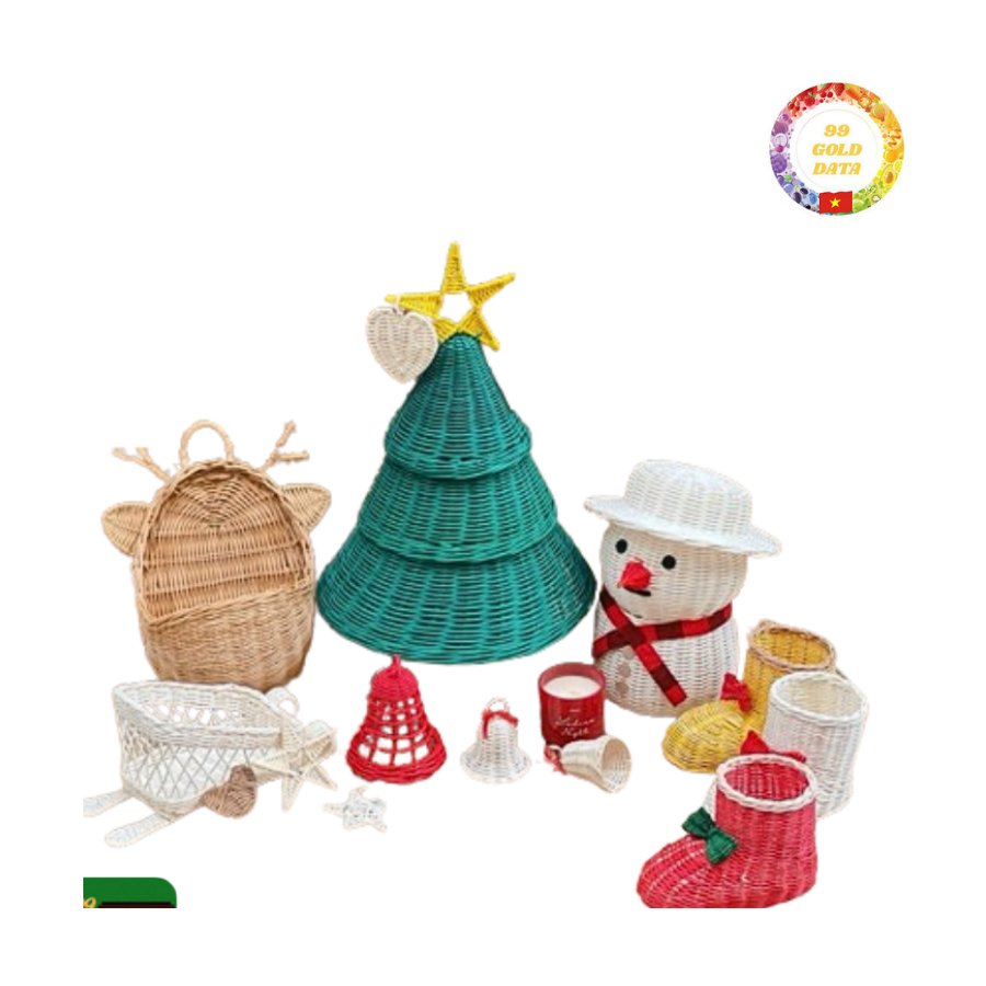 Boho Style Handmade Rattan Christmas Ornaments Set Rustic Wicker Tree Hanging Decoration for Cozy Farmhouse Holiday Decor