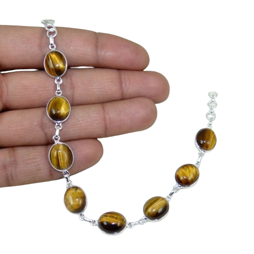 Boho Style Jewelry 925 Solid Sterling Silver Bracelet Tiger Eyes Gemstone Bracelet Jewelry Women Fashion Jewelry Bracelet