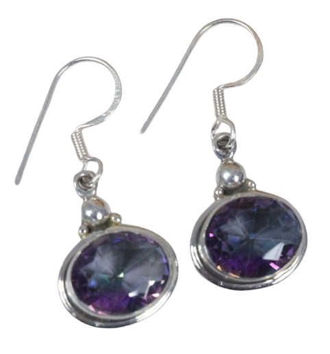 Boho Style Mystic Topaz 925 Sterling Silver Gemstone Faceted Hook Earring April Birthstone Handmade Jewelry Gift for Christmas